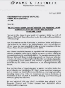 Lawyers representing Joana Quaye, the ex-wife of Ghanaian businessman Richard Nii Armah Quaye, have formally written to the Ghana Police Service requesting updates on several domestic violence complaints she previously lodged against him.